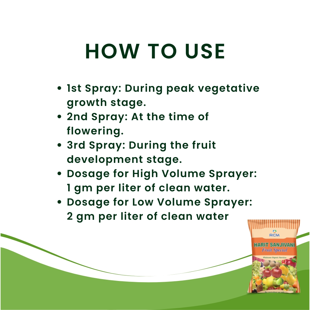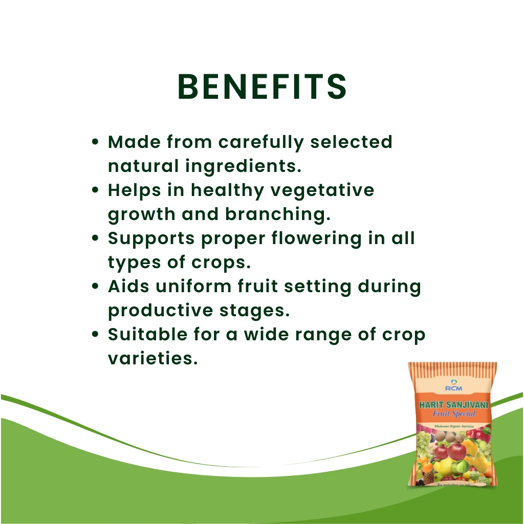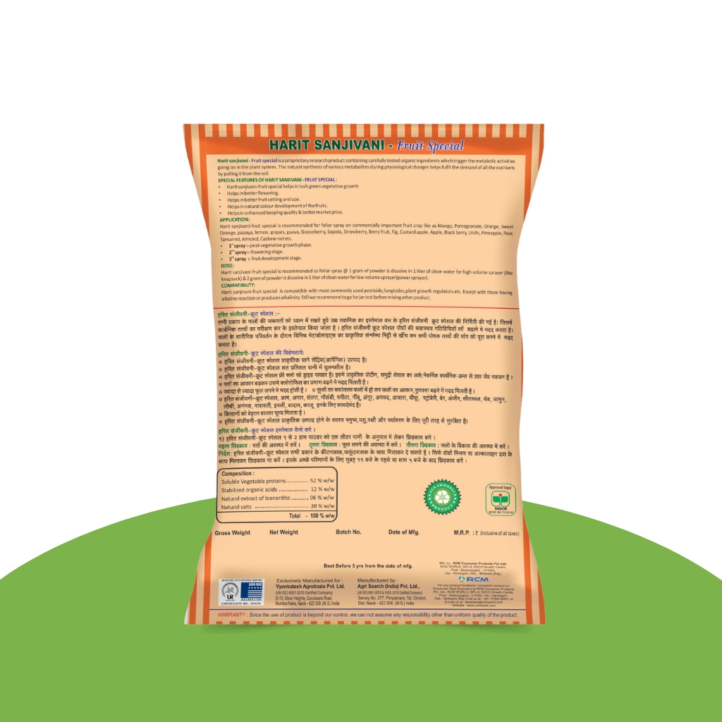 Harit Sanjivani – Fruit Special is a natural treatment made to support crops during their key stages—vegetative growth, flowering, and fruit setting. It contains plant-based ingredients that help activate natural processes within the plant and improve nutrient movement from soil to plant. Though its name includes “Fruit”, this treatment is suitable for all types of crops including vegetables, fruits, and ornamentals. It helps support strong growth, timely flowering, and proper fruit setting when applied as per the schedule. Easy to use as a foliar spray, it fits well into crop management at productive stages.